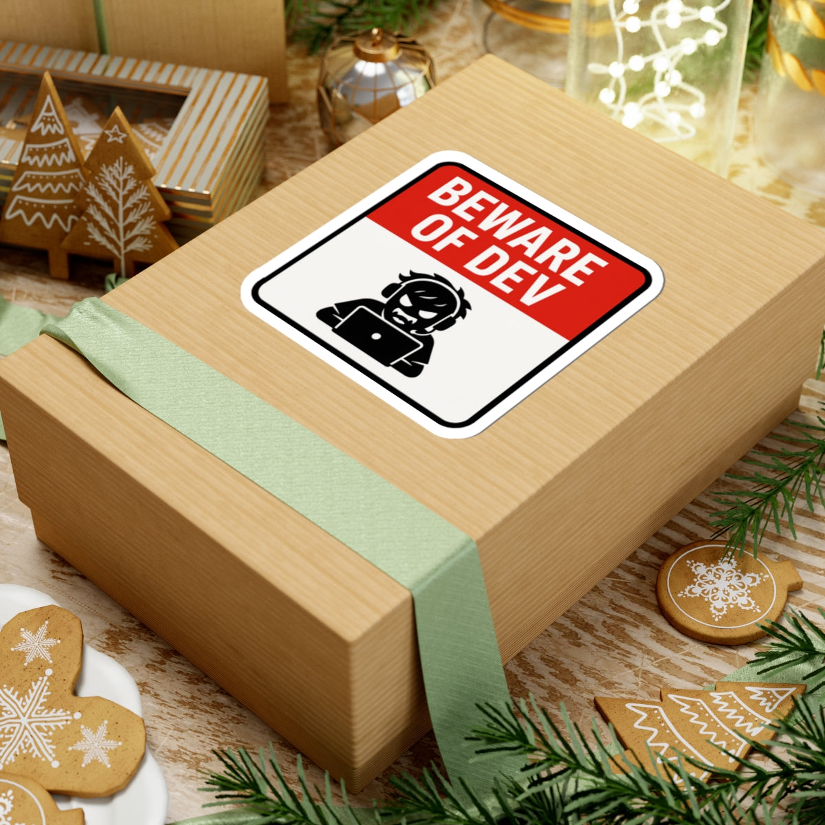 Beware of Dev Kiss-Cut Stickers - Fun Tech Humor, Laptop Decals, Programmer Gift, Geeky Decor, Creative Office Supplies